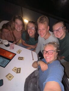 Most evenings, me and a few other from the squad hang out on the terrace and play Secret Hitler with Stefanie and Moritz. They’re the same age as us, so it’s super fun! We don’t have much time left here at the foundation, we will miss them.