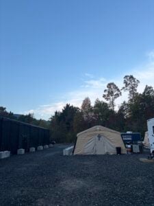 This week we did disaster relief in Black Mountain, NC from hurricane Helene. We stayed at an Adventures Relief base camp in large army like tents with bunk beds. We were so excited to have mattresses because we’d been sleeping in camping tents on the ground for 3 weeks. I’d never realized how big twin beds are! We even had a bathroom trailer with real toilets instead of porta potties!